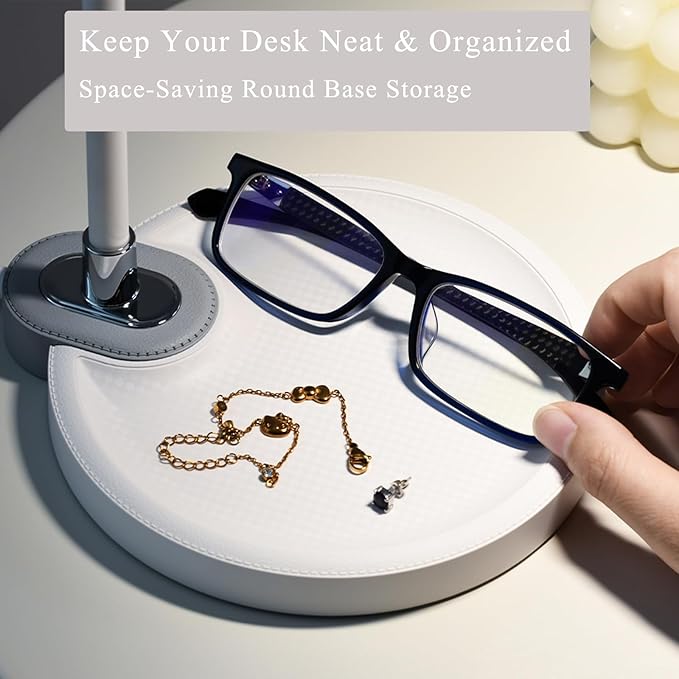 - 【Desk Light with Storage Base】Our table light not only boasts a minimalist appearance but also features a specially designed recessed base, providing a convenient storage space for everyday items such as phones, headphones, watches, jewelry, keys, and more, keeping your desktop neat and organized.