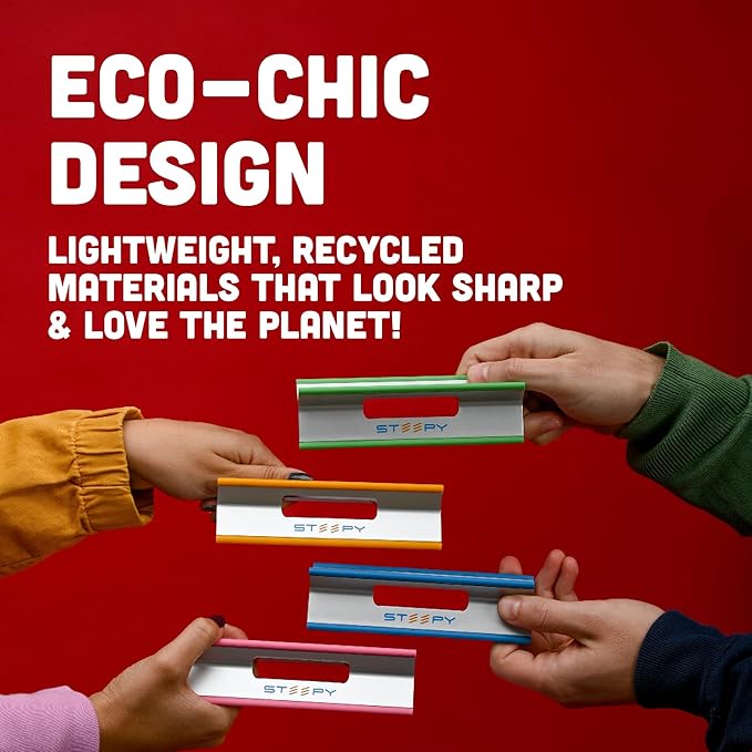 - SETUP'S A BREEZE - Just unfold & go—no screws, no hassle. Instant use, instant time saver! Steepy desk laptop stand is a laptop stand portable made out of strong & durable recycled plastic, with rubber edges to provide the sturdy & stable support your device needs & prevent it from sliding or skidding.
