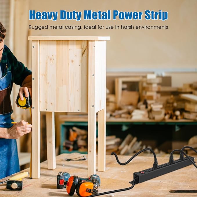 - 12 Outlet Mountable Power Strip: 12 outlets for more of your needs, with a 3 foot 14AWG power cord and 15A high current, max power: 60Hz/125V/15Amp/1875W. Package includes 4 mounting screws.