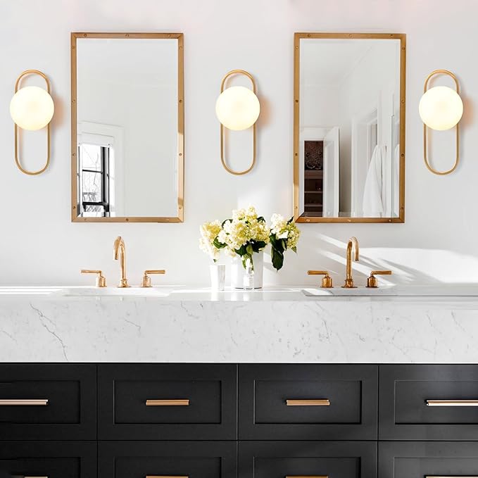 - 【Upgraded Brushed Gold Finish】The wall sconce feature a sleek brushed gold finish lamp body accompanied by white globe glass shades. The upgraded finish not only adds an elegant touch but also includes a scratch and tarnish-resistant coating, ensuring that the gold wall sconces maintains its pristine appearance over time. This exquisite wall scone is suitable for various decoration styles, making it the perfect choice to enhance your home lighting.