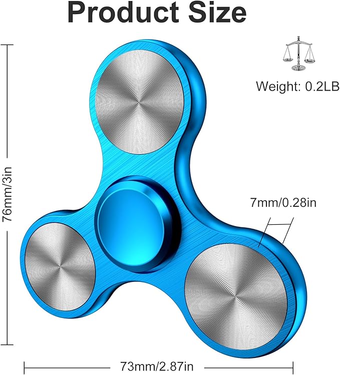 Fidget Spinners Toy, Metal Stainless Steel Bearing High Speed 4-8 Min Spins, EDC ADHD Stress Anxiety Relieves Reducer Fidgets Finger Toys, Spinner Toys for Kids and Adults (Blue)