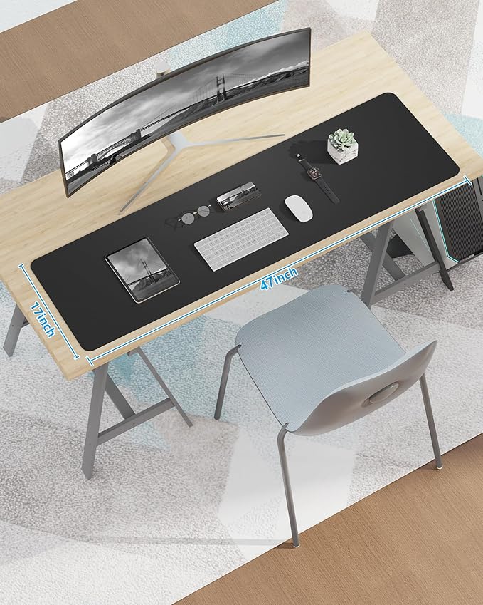 Large Desk pad mat,Mouse Pad,Office Desk Mat, Non-Slip PU Leather Desk Blotter,Large Desk pad,Waterproof Keyboard mat for Office/Home/Decor (Black,48" x 17")