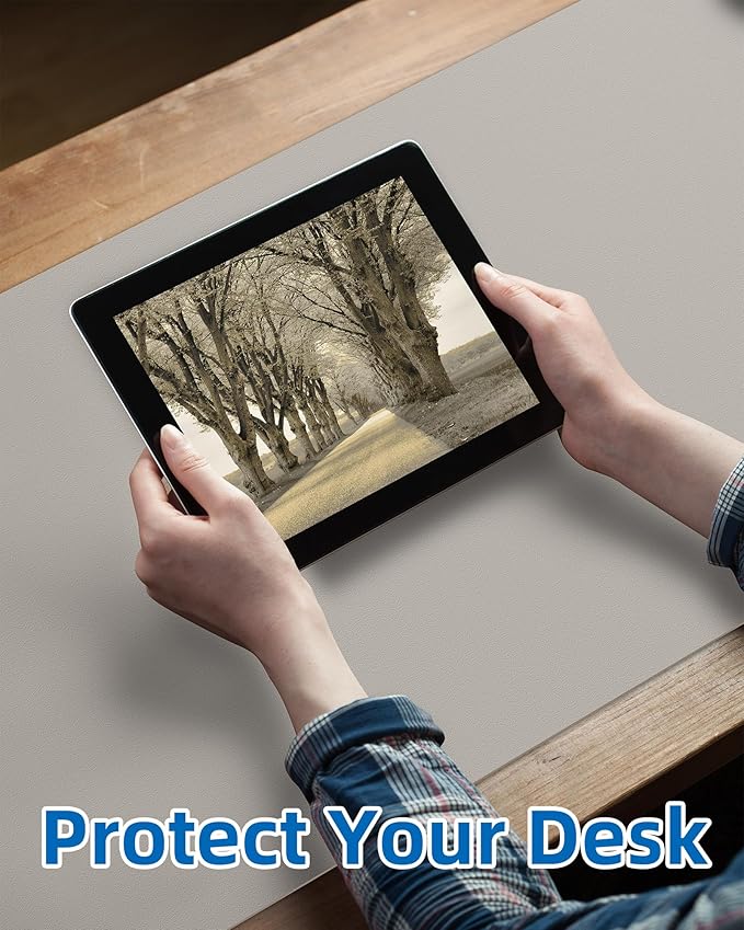 Leather Desk Pad Blotter,Mouse Pad,Office Desk Mat, Non-Slip PU Leather Desk mat,Large Desk mat,Waterproof Keyboard mat for Office/Home/Decor (Light Grye,35" x 17")