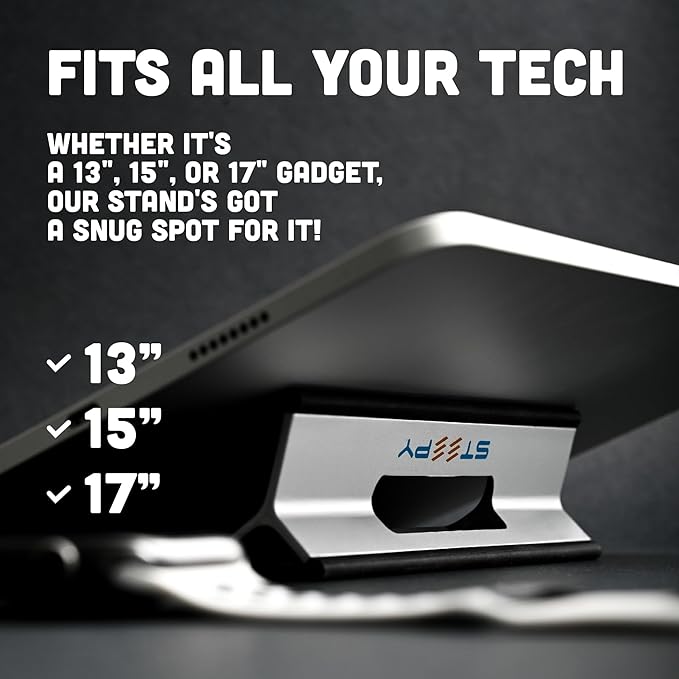 - FITS ALL YOUR TECH - The macbook stand for desk is compatible with all devices such as iPad wedge or iPad writing stand, iPhones, Laptops, Air, Pro, HP, Dell, Lenovo, Smartphones, Tablets, Samsung Galaxy, Androids, Kindle, Amazon Fire & video projectors.