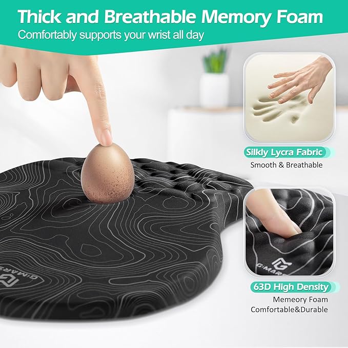 - 【New upgrade,More Comfortable with Ergonomic Supporting】Gimars mouse pad wirst rest set filled with 100% upgraded ultra soft foam, always fit your wrist curve, providing more comfortable & lasting support for your wrist,and will not collapse. The 15%-degree slope ensures proper wrist alignment, reducing pressure and preventing carpal tunnel pain.