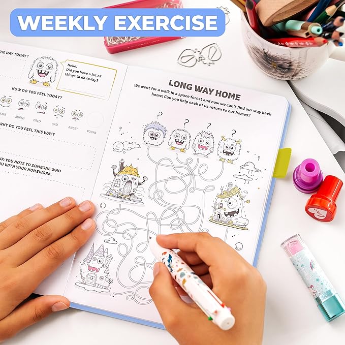 - NEW EXERCISE EVERY DAY TO KEEP JOURNALING ENGAGING – This kids journal for writing lasts 14 weeks and has undated daily pages with questions to answer and exercises to complete. Each week of the kids journal notebook also includes a bigger exercise to keep journaling fun.