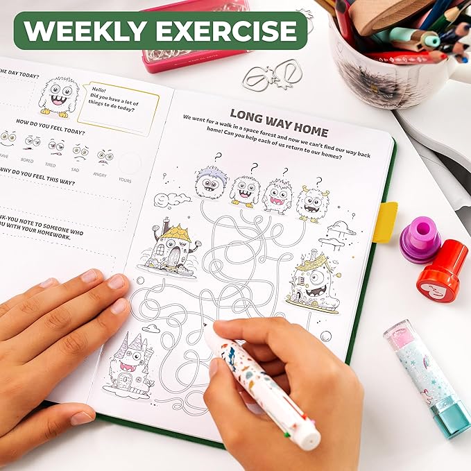 - NEW EXERCISE EVERY DAY TO KEEP JOURNALING ENGAGING – This kids journal for writing lasts 14 weeks and has undated daily pages with questions to answer and exercises to complete. Each week of the kids journal notebook also includes a bigger exercise to keep journaling fun.