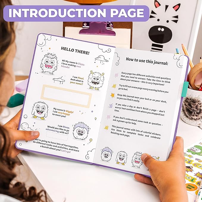 - FEATURES FUN MONSTER CHARACTERS & COLORFUL STICKERS – This notebook journal for kids features 4 fluffy monsters who will guide your child from page to page. Inside the writing journal for kids, you will find 6 sheets of stickers to decorate the pages.