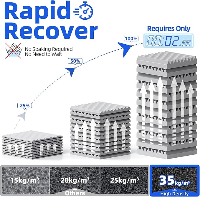 - 🚀 Instant Gratification: Bid farewell to tedious soaking and waiting times. Our ready-to-use soundproof wall panels, composed of 100% ultra-resilient PU foam high density material, spring into action, expanding and returning to their optimal shape within seconds of unpacking.