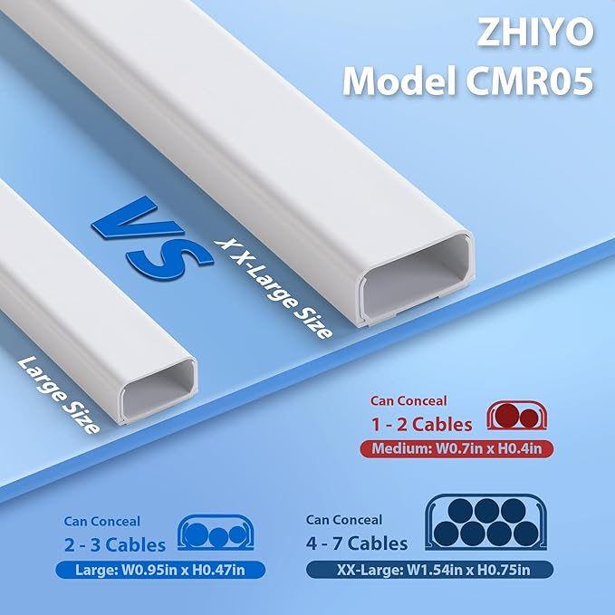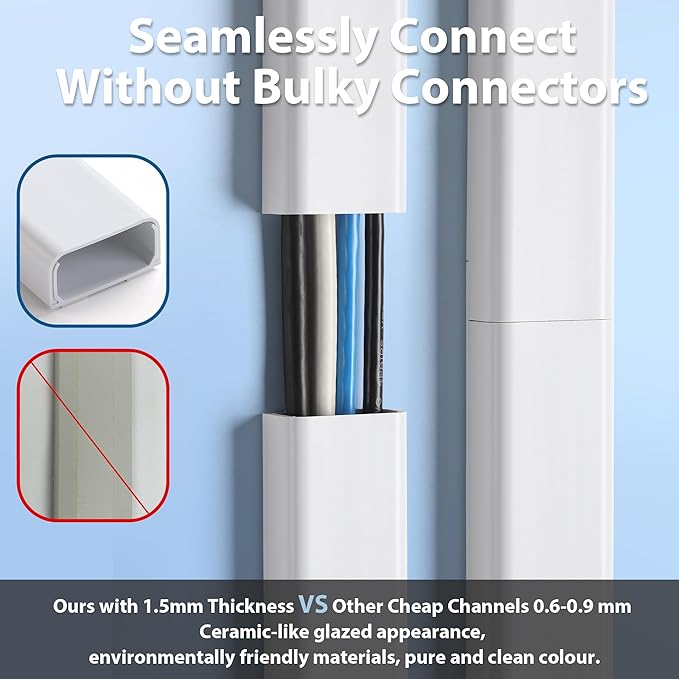 - Enhanced Safety and Quality: Made from new PVC material with an odorless, pure color; Achieves the highest fire-resistant UL94 V-0 rating for superior safety. ZhiYo Cord Hider ensures lasting durability without yellowing over time; This cable concealer has a thickness of 1.5mm, thicker than ordinary cable hider wall strips(0.7mm)