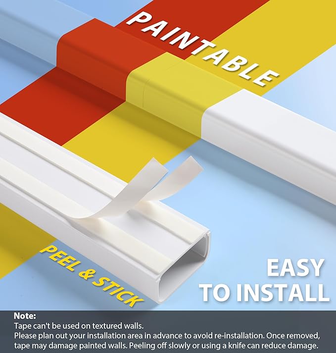 - Tool-Free Installation: With a strong self-adhesive backing, simply peel & stick the pre-applied tape to a smooth, dust-free surface. It can slide on or snap on directly. You can determine the most comfortable way to complete the cord cover wall installation in different spaces