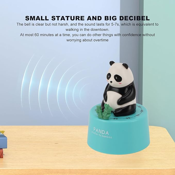 Mechanical Countdown Timer, 60 Minutes Mechanical Kitchen Timer Eco Friendly Loud Alarm Magnetic Base Cute Animal Shape for Kitchen (Panda with Blue Base)