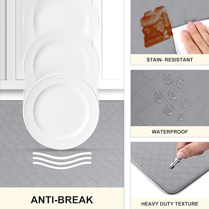 - Non Slip Kitchen Rug Set: Backing of the anti fatigue gel kitchen mat set is made of non-slip material;also beveled edges help prevent tripping.Please clean the floor before use.Clean and dry surface will be conducive to the kitchen mats slip resistant