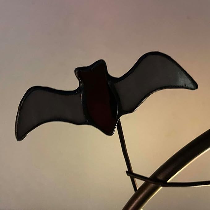 Bieye L10938 Spooky Graveyard Tiffany Style Stained Glass Birdhouse Table Lamp for Halloween Decor (21-inch High, Bat Nest)