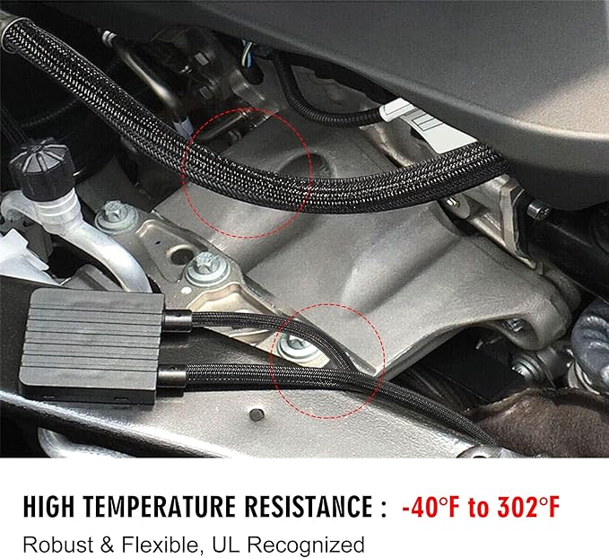 - Temperature Range:-103 to 257 °F. This split sleeving is high temperature resistance. Suitable for Hifi speaker hdmi TV computer wires. Can protect your cables in various harsh environments such as automotive engine industries