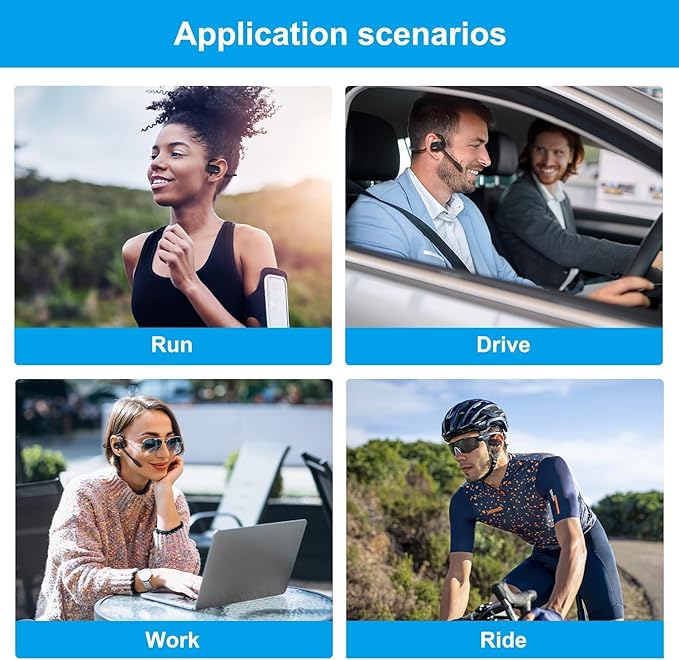 - [All-day comfort]: Compared to over-ear and in-ear headphones, open ear headphones offer enhanced comfort for prolonged wear without causing discomfort. Moreover, when engaged in outdoor activities such as running, cycling, hiking, or driving, open ear headphones enable you to remain aware of your surroundings, ensuring safety.