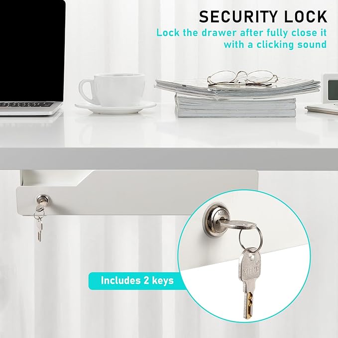 Lockable Drawer for Under Desk White,16" W x 11.8" D x 6.3" H Under Desk Locking Locking Drawer