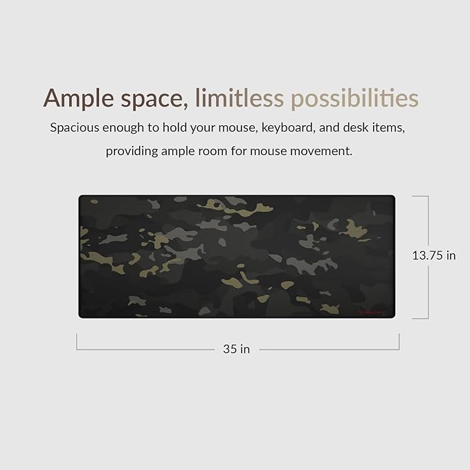 - EXTENDED LARGE SIZE: Measuring an impressive 35 x 13.75 inches, the Urban Commando Camo Desk Mat offers a vast surface for your mouse, gaming keyboard, and other essentials. Dive into work or games with ample space and enjoy having all the room you need to get the job done.