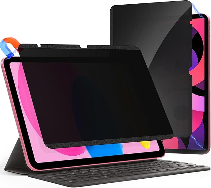 - 【PRIVACY ON THE GO】Easily add full-screen privacy to your iPad with the removable and reusable magnetic privacy screen protector. Safe and convenient to store when not in use with the included plastic folder, making travel and remote work safe and secure when you need privacy the most. It is always washable, do not worry about getting smudged.