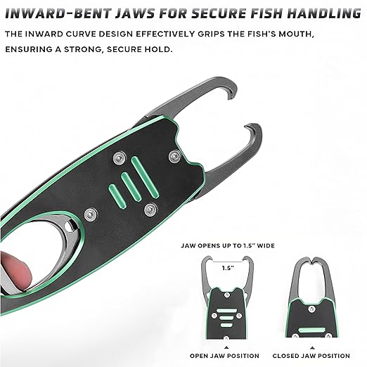 - 【FISH-FRIENDLY HANDLING】The gripper's handle rotation feature ensures that releasing the fish is gentle, avoiding harm to the fish's lip. A perfect gift for fishing enthusiasts. Plus, our product is backed by a 1-year satisfaction guarantee – if not satisfied, get a refund or replacement.