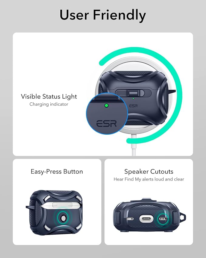 - Powerful Drop Protection: shock-absorbing polymer and Air-Guard corners keep your charging case safe from even the worst drops and impacts