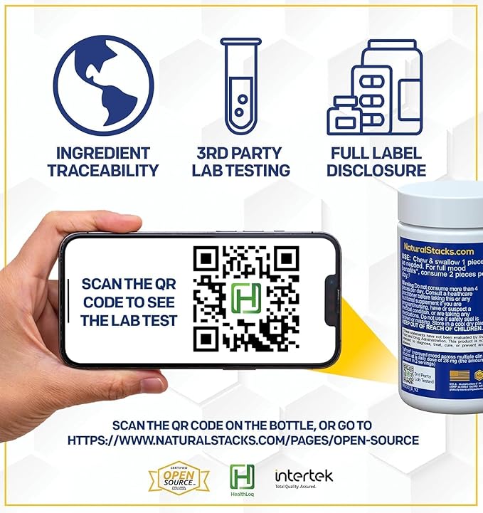 - 🧠At Natural Stacks, we focus on full label disclosure, 3rd party lab testing, ingredient traceability, and purity. Natural Stacks created Mood Bites to function as the premier calm supplement and mood supplement on the market*. It’s time for less stress. Experience a more consistent, positive mood with Mood Bites today*.