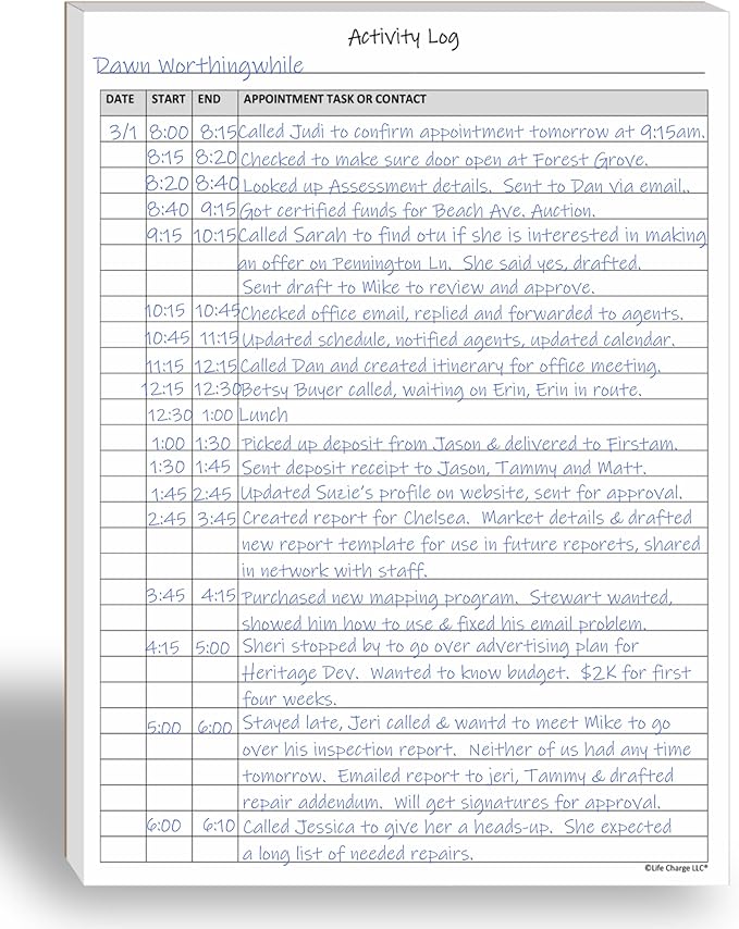 - Boost Office Productivity – Stay organized with this daily activity log notepad designed for professionals. Ideal for tracking calls, meetings, or job tasks in real time or after they happen. Use as a time tracker, task log, or client communication record for business or project needs.