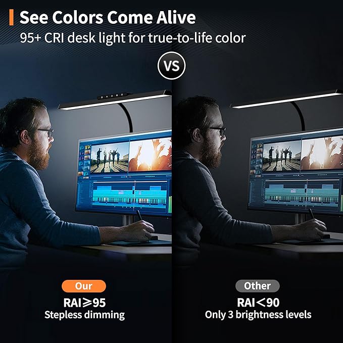 - CRI≥95 Eye Caring Computer Lamps: SEOUFRDZ led lamp is equipped with high color rendering index (CRI≥95), the desk light is soft, flicker free, anti glare and accurate color presentation, close to natural light, long time to use the office desk lamp will also not feel fatigue. Table lamp have built in automatic delay function which you can set a timer before you go sleepping
