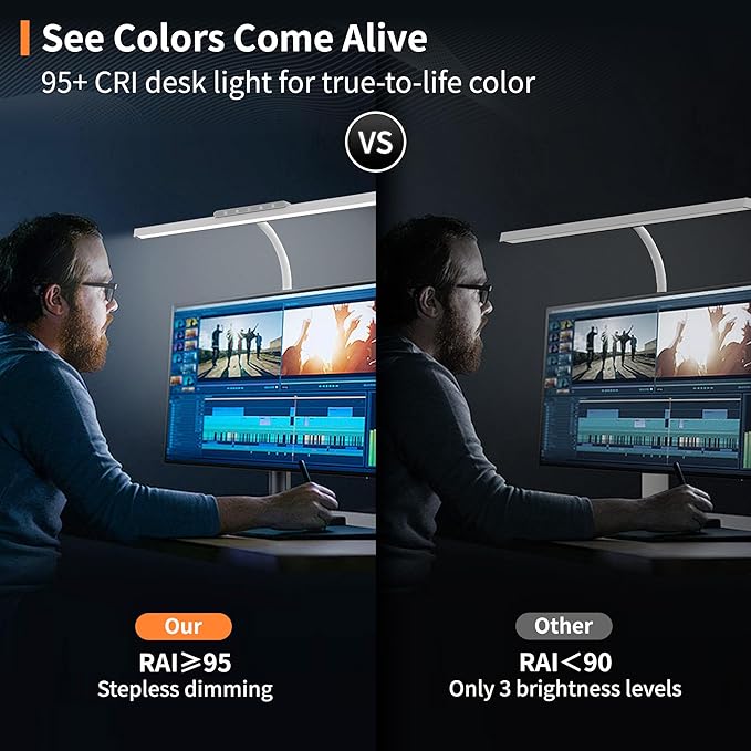 - Stepless Dimming Computer Desk Lamp: SEOUFRDZ clamp lamp have three color modes: warm light (3000K), warm white light (4500K) and white light (6000K), you can also long press the white desk lamp panel for stepless dimming ( from 10% to 100%). Excellent desk lamps for home office allowing you to have a nice lighting environment while working, reading, studying, drawing, crafting, sewing or gaming. Work desk lamp with clip memory function to restore your last settings