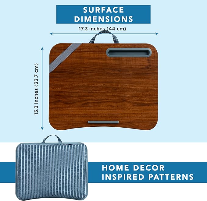 - Fits Laptops up to 15.6”: Solid 17.3" x 13.3" surface gives you a stable workspace for laptops, tablets, or notebooks anywhere.