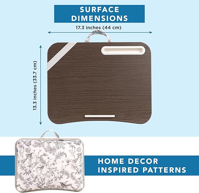 - Fits Laptops up to 15.6”: Solid 17.3" x 13.3" surface gives you a stable workspace for laptops, tablets, or notebooks anywhere.