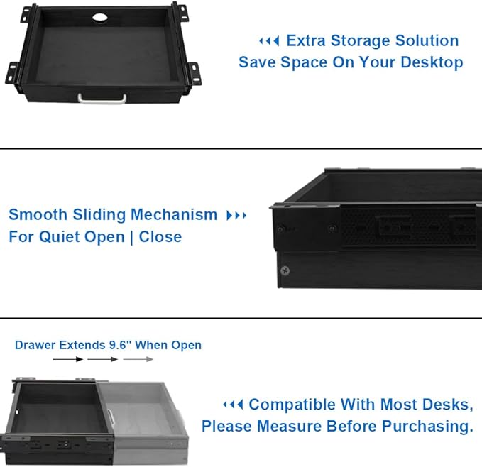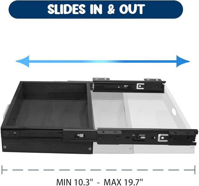 - EASY TO INSTALL - Our improved under desk slide drawers are easy to install, the entire body is already assembled and you can easily install them under your desk or cabinet. All accessories, screws and easy installation instructions are included in the package (please make sure you have enough space to install the drawers before purchasing)