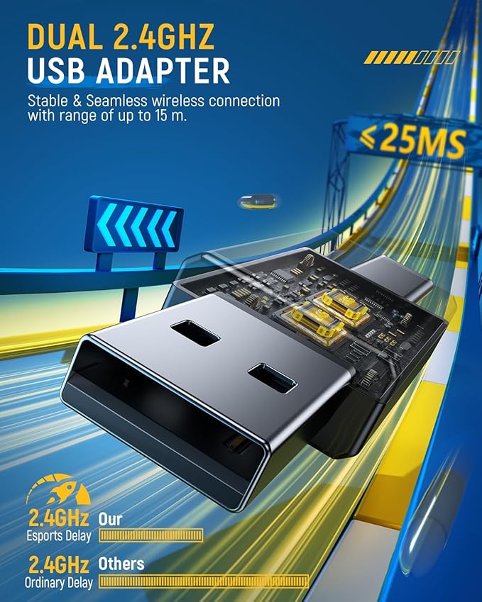 - Multi-Platform Compatibility: The 2.4GHz USB dongle is compatible with PC, Ps4, Ps5, Laptop, Switch, the wireless headset just plugs into the USB&Type-c to play games on various devices. And we are equipped with Bluetooth 5.3 & 3.5mm jack cable. The 3 modes meet all your needs, so you no longer worry about device compatibility.