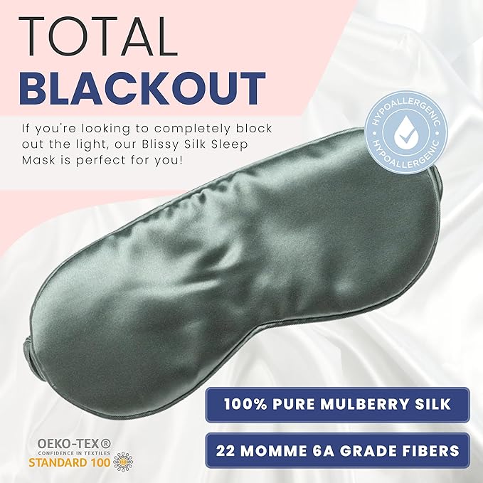 - TOTAL BLACKOUT - If you're looking to completely block out the light, our Blissy Silk Sleep Mask is perfect for you! Made with 100% pure Mulberry silk and 22 momme 6A grade fibers, this mask will keep the light out and help you get a good night's sleep.