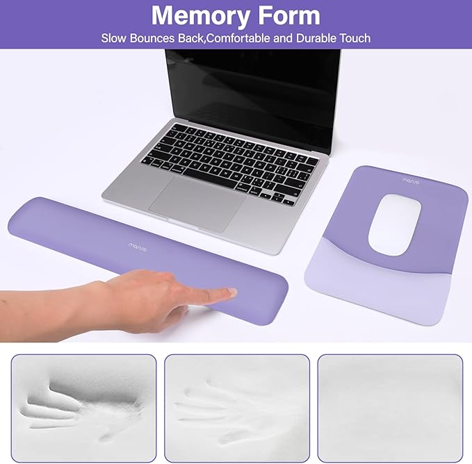 MOSISO Wrist Rest Support for Mouse Pad&Keyboard Set, Rectangular Ergonomic Mousepad Non-Slip Base Home/Office Pain Relief&Easy Typing Pad with Neoprene Cloth&Raised Curved Memory Foam, Purple