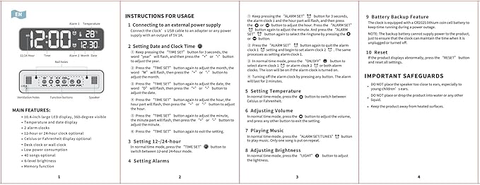 - 【Memory Function】There is a built-in memory function, even if the power is disconnected, the time data will not be lost, no need to reset. Additionally, you can set two separate alarms if you are a heavy sleeper, or you have a different time schedule with your families.