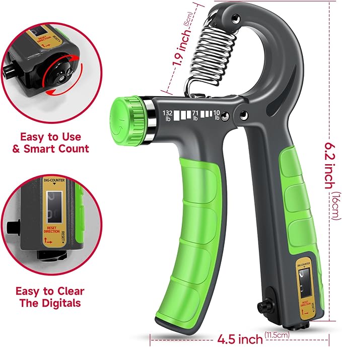 - Count Tracking Technology: Each grip strengthener in this set comes with its own dedicated counter, meticulously tracking every repetition for each hand. This advanced feature ensures that users can maintain symmetrical training across both hands, promoting even muscle development and optimal balance, ensuring that each session contributes effectively to overall muscular health and strength equilibrium.