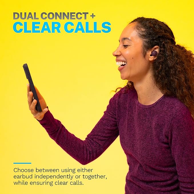 - 🎶AUTO ON & CONNECT: The Go Pop+ True Wireless earbuds turn on and connect to each other automatically. Just take them out of their USB charging case for seamless, hassle-free connection. Then just connect the ear buds to your phone. Utilizing Bluetooth 5.3, this is our fastest handsfree connection yet