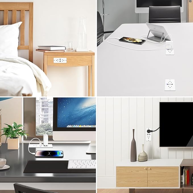 - Recessed Outlet Strip with Flat Plug: The 45 degree flat plug saves space and provides space for other plugs to share the socket Ideal for tight spaces such as behind furniture. It has all the power a person would reasonably need at their desk or work station, create less clutter and have a more organized desk area, in use and that it is not taking up floor space or counter space.