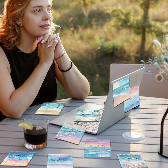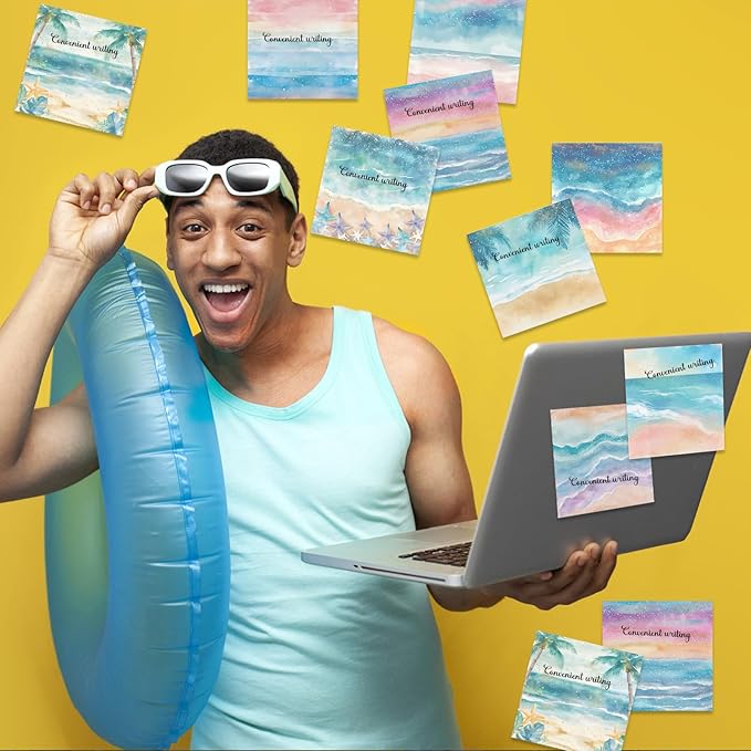 - Easy to Use: These self-adhesive beach note pads can be easily pasted on the surface of most items, such as walls, doors, windows, books, whiteboards, desks, computers, refrigerators and other flat surfaces, easy to tear and easy to stick, will not leave adhesive traces on the surface of the items.