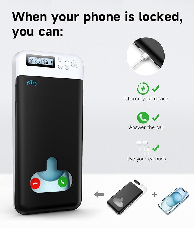 ySky Timed Phone Lock Box for iPhone and 6.7inch Phones, Portable Phone Jail Locker Box with Timer Prevent Phone Addiction | Unplug from Phones, Video Games, Social Media to Achieve Goals(Black)