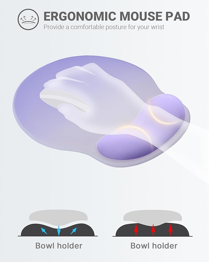 Ergonomic Mouse Pad Wrist Support, Comfortable Mouse Pad Wrist Rest, Relieve Wrist Pain Gel Mouse pad, Non-Slip Rubber Base Mousepad for Laptop, Computer(Gradient Dark Purple)