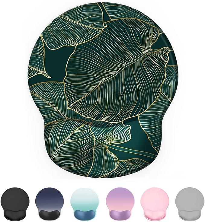 Ergonomic Mouse Pad Wrist Support, Comfortable Mouse Pad Wrist Rest, Relieve Wrist Pain Gel Mouse pad, Non-Slip Rubber Base Mousepad for Laptop, Computer(Green Leaf)