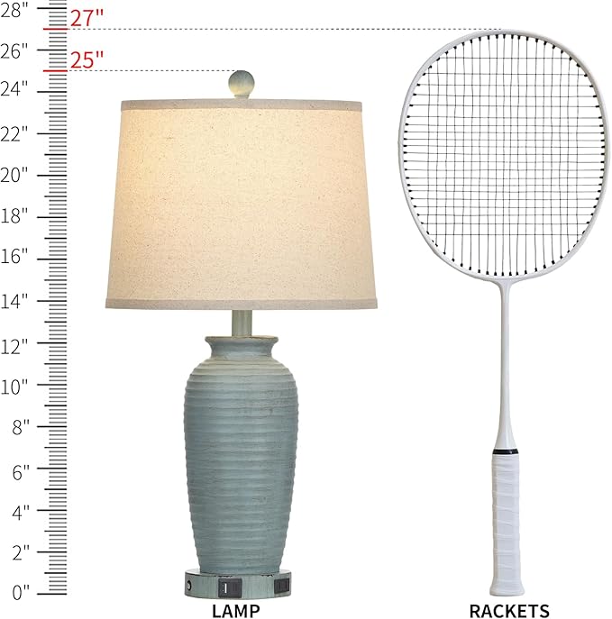 - 【Professional LED Bulb & Eye-Caring Shade】The blue lamps comes with E26 LED Bulbs,800 lumens,2700k, with a 25,000 hour lifespan,it will save up to 90% energy. Natural linen beige lampshade softens the light and provides comfortable and natural light, no flicker, no dazzle, has an effect on preserve eyesight. It's perfect decorative lamps to any living room, dining room, bedroom, entry or office.