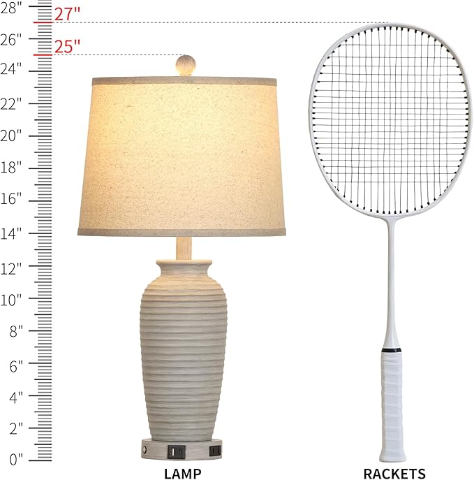 - 【Farmhouse Vintage Style Designs】This bedside table lamp is made of polyresin with a raised surface that adds a touch of texture, finished in a natural linen beige lampshade which is perfect combination of rustic and nature style that adds warm and elegance to your space. Our table lamps not only illuminate your home, but are a unique handicraft. It’s aslo a perfect gift to your friend!