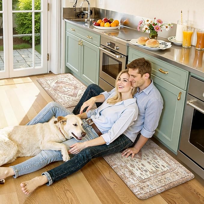 - Versatile: Boho style design features a central medallion and floral motifs in the style of rugs,easily to match your kitchen decor,bright your home.Soft thick foam provides ample support for standing in kitchen sink,laundry room, office,bathroom,dinning room,or any other high-traffic area.