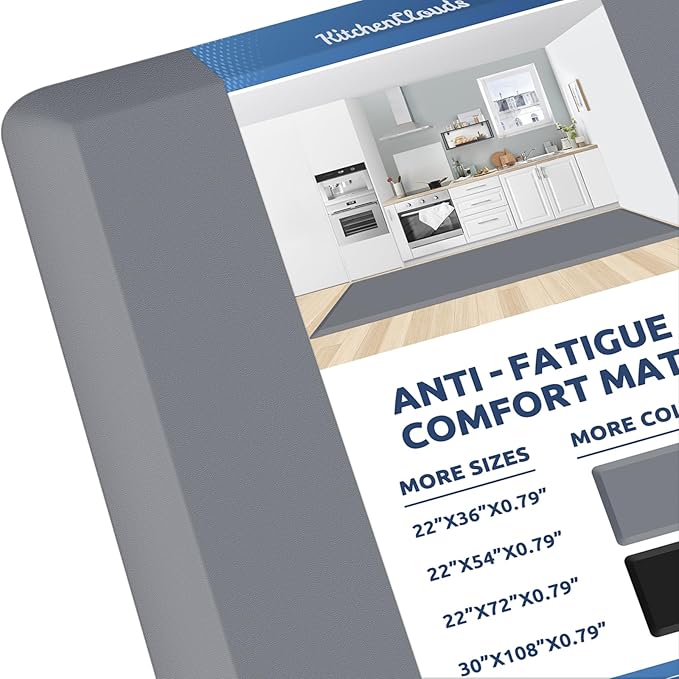KitchenClouds Kitchen Mat Cushioned Anti Fatigue Rug 30"x108" Waterproof, Non Slip, Standing and Comfort Desk/Floor Mats for House Sink Office (Grey,0.8inch)