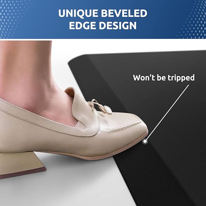 - Safety Design: the diamond-shaped design on the bottom of anti fatigue mats keeps the mat in place and prevents slippage; the bevel edge reduces the risk of tripping on the mat