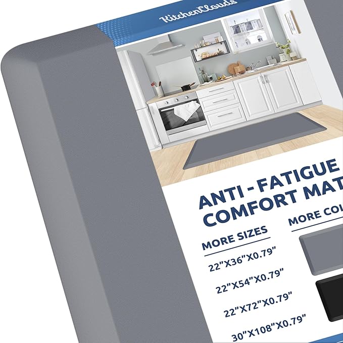 KitchenClouds Kitchen Mat Cushioned Anti Fatigue Rug 22"x54" Waterproof, Non Slip, Standing and Comfort Desk/Floor Mats for House Sink Office (Grey,0.8inch)