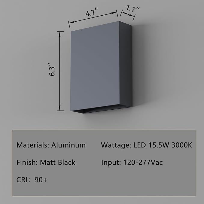 - 【120-277V Input Voltage】Compatible with 120-277V voltage, this wall light fixtures can be widely used for home or any projects need. This rectangular up and down wall lamp offers modest lighting for indoor or outdoor places and becomes an unique decoration choice for your house.